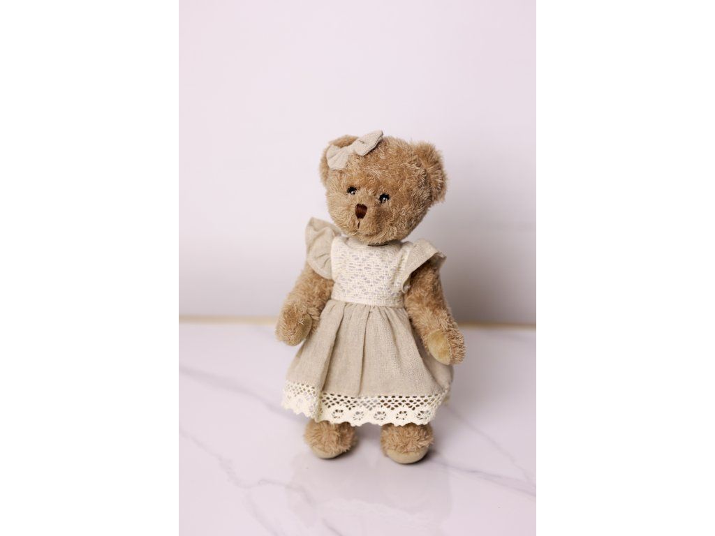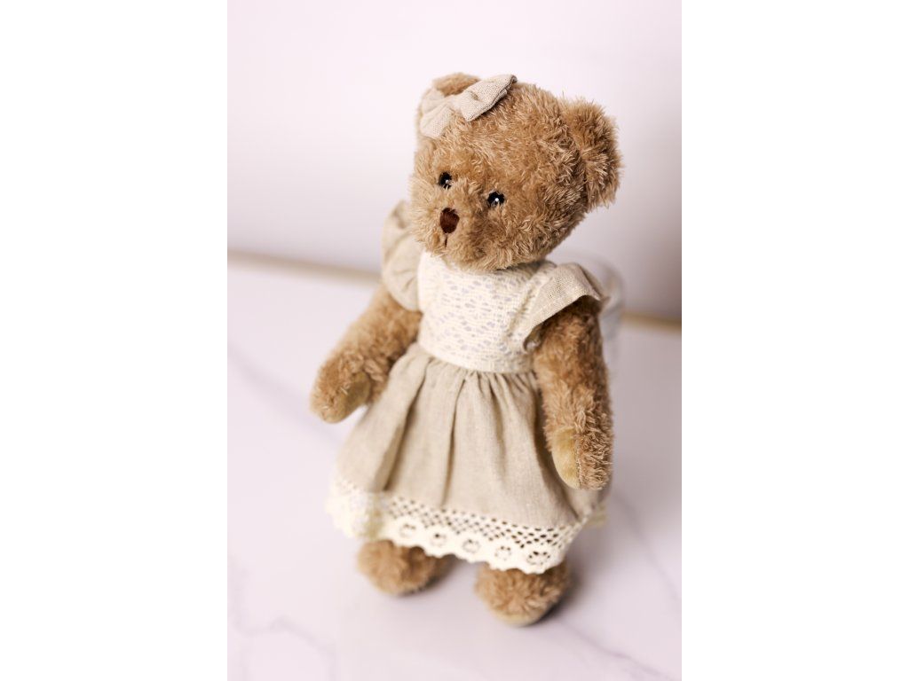 Plyšový medvídek v přírodních šatech, volánkové rukávy