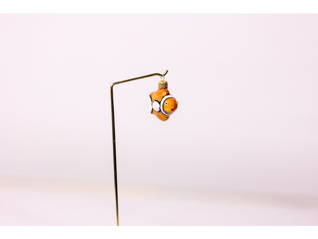 Skleněná ručně zdobená ozdoba ve tvaru pohádkové postavy ryby Nemo