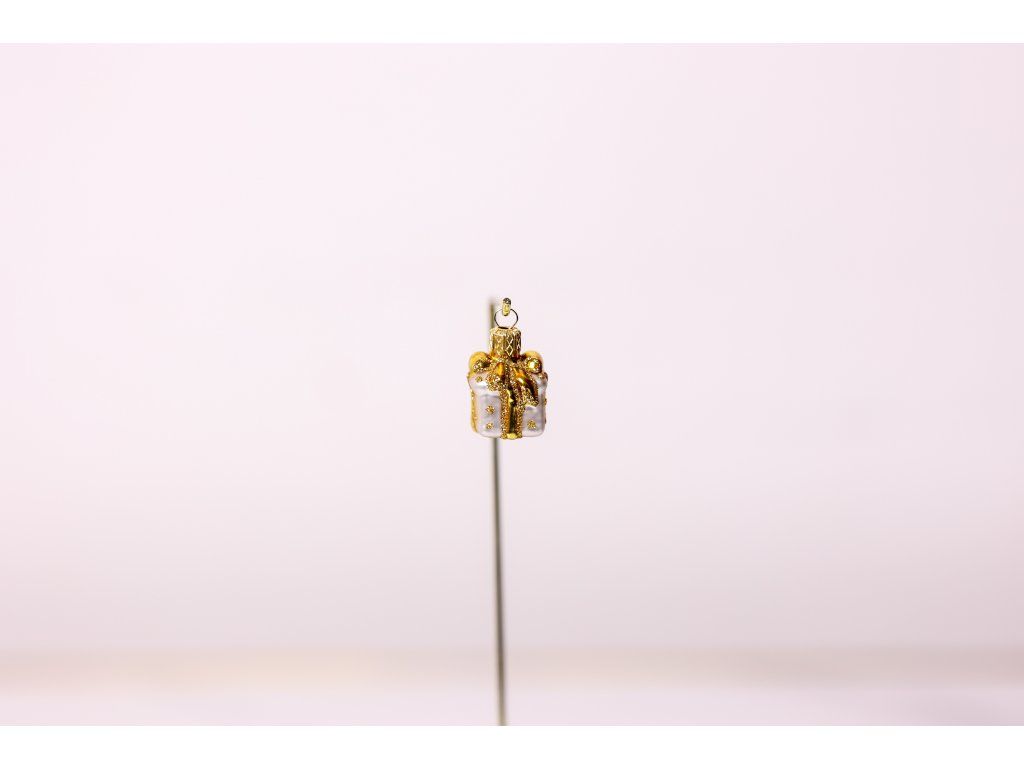 Skleněná ručně zdobená ozdoba ve tvaru dárečku