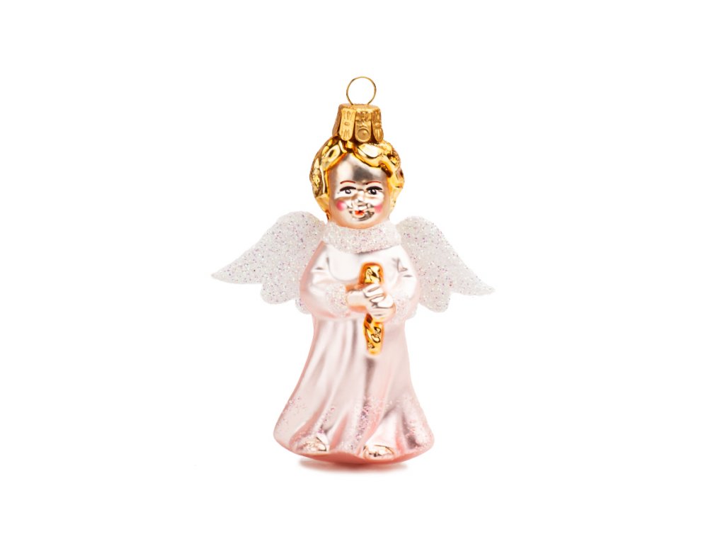 Skleněná ručně zdobená ozdoba ve tvaru anděla